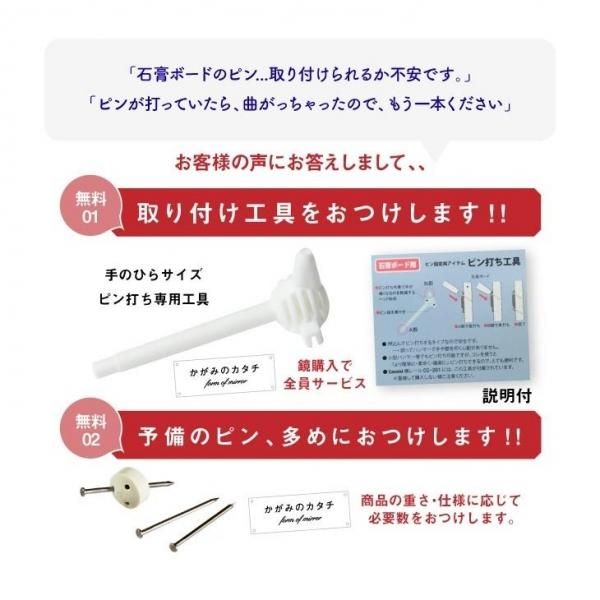 石膏ボードピンに対応した、壁の穴を気にせず掛けられる全身鏡。