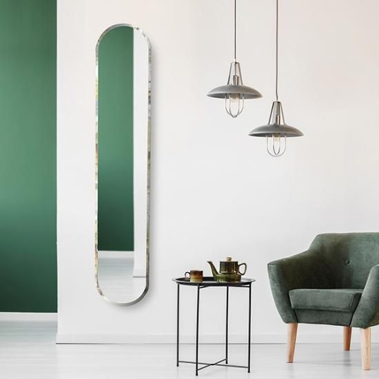 光の反射でお部屋が明るくなるのはもちろん、美しい鏡はメイクや身だしなみチェックなど毎日の時間をクリアに映し、明るい気持ちにさせてくれます。